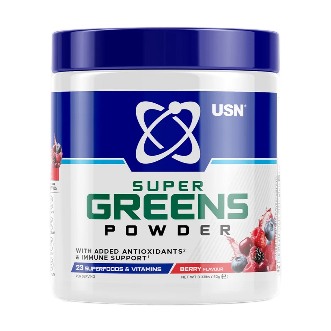 Η ινουλίνη και οι φυτικές ίνες μήλου προάγουν επίσης την υγιή εντερική χλωρίδα και συμβάλλουν στην υγεία του πεπτικού συστήματος. Η φρουτώδης γεύση μούρων προσφέρει μια αναζωογονητική γευστική εμπειρία – εντελώς χωρίς ζάχαρη. Το Greens Super Powder της USN είναι ιδανικό για smoothies, μιλκσέικ ή ως καθημερινή ώθηση θρεπτικών συστατικών.