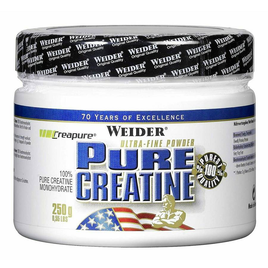 Η κρεατίνη είναι ένα ενδογενές μόριο που εμφανίζεται κυρίως στους μύες, όπου αναγεννά το «ενεργειακό νόμισμα» τριφωσφορική αδενοσίνη (ATP) και έτσι παρέχει πρόσθετη ενέργεια. Ως αποτέλεσμα, η ημερήσια πρόσληψη 3 g κρεατίνης έχει αποδειχθεί ότι αυξάνει τη σωματική απόδοση κατά τη διάρκεια προπόνησης δύναμης υψηλής ταχύτητας ως μέρος βραχυπρόθεσμης έντονης σωματικής δραστηριότητας. Για την καθαρή κρεατίνη μας βασιζόμαστε στην επώνυμη πρώτη ύλη υψηλής ποιότητας Creapure®, η οποία θεωρείται ως το απόλυτο χρυσό πρότυπο όσον αφορά την καθαρότητα και την ποιότητα.